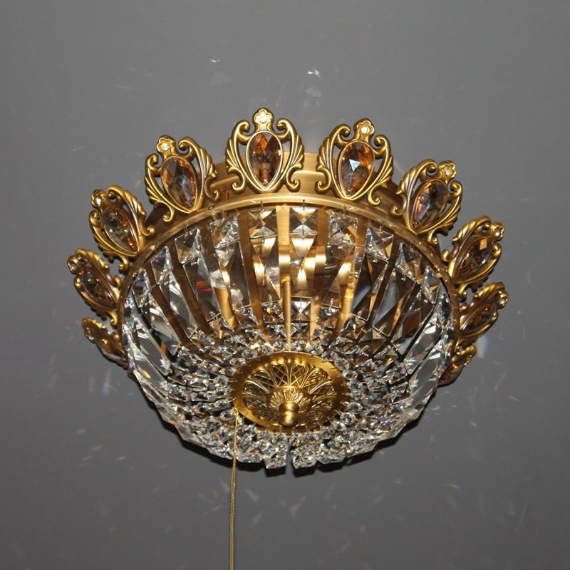 Traditional Beveled Crystal Bowl Flush Mount Ceiling Lamp With 4 Brass Heads For Bedroom Lighting