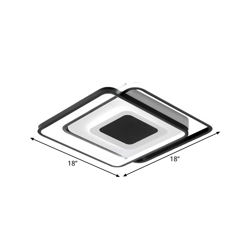 Plafonnier LED métallique noir, design minimaliste superposé, largeur 18"/21,5"