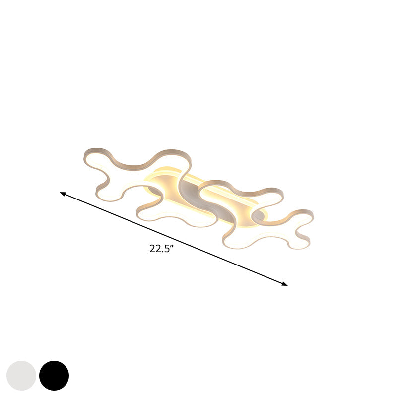 Modern Wavy Frame Ceiling Lamp In Black/White Aluminum With Led Flush Mount Lighting Available
