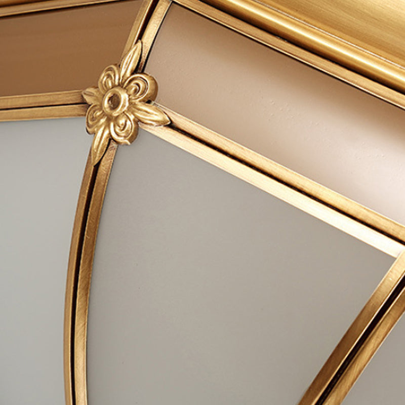 Colonial White Glass Dome Ceiling Light Fixture For Bedroom - Brass Flush Mount 3/4/6 Heads