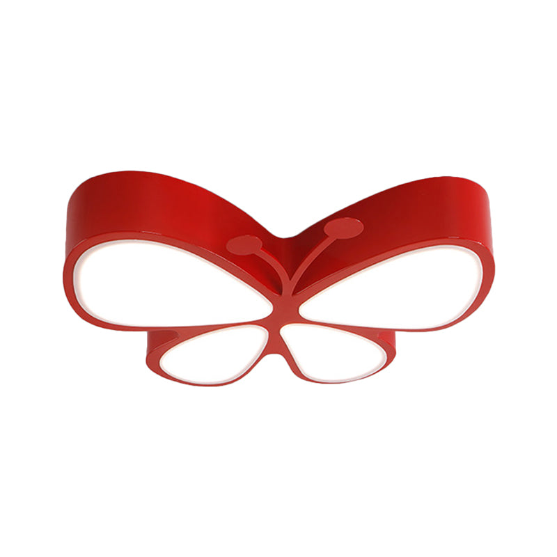 Contemporary Butterfly Led Flush Ceiling Light - Classroom Metal Fixture Red / White 18