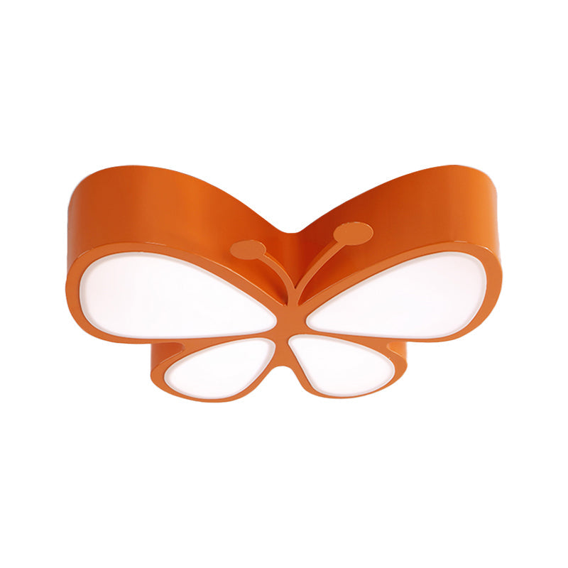 Contemporary Butterfly Led Flush Ceiling Light - Classroom Metal Fixture Orange / White 18