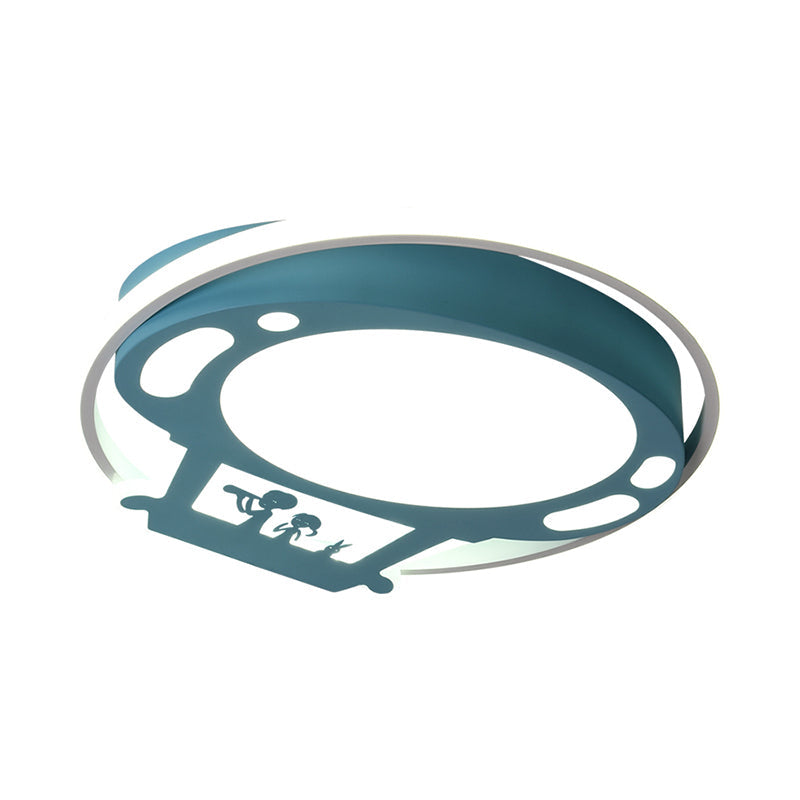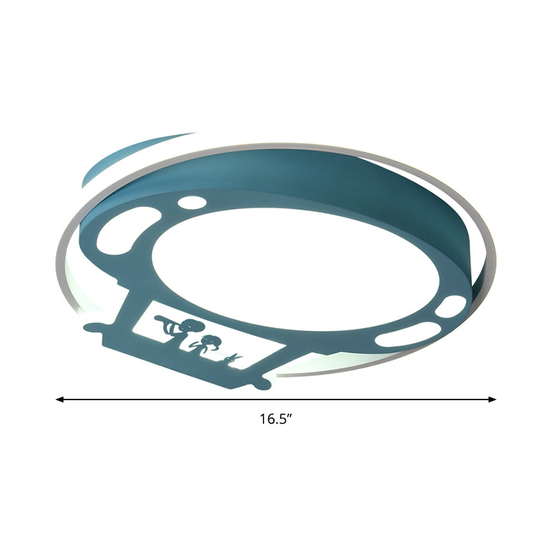 Colorful Cartoon Hot Air Balloon Led Flush Ceiling Light With Metal Shade And Frosted Diffuser Blue