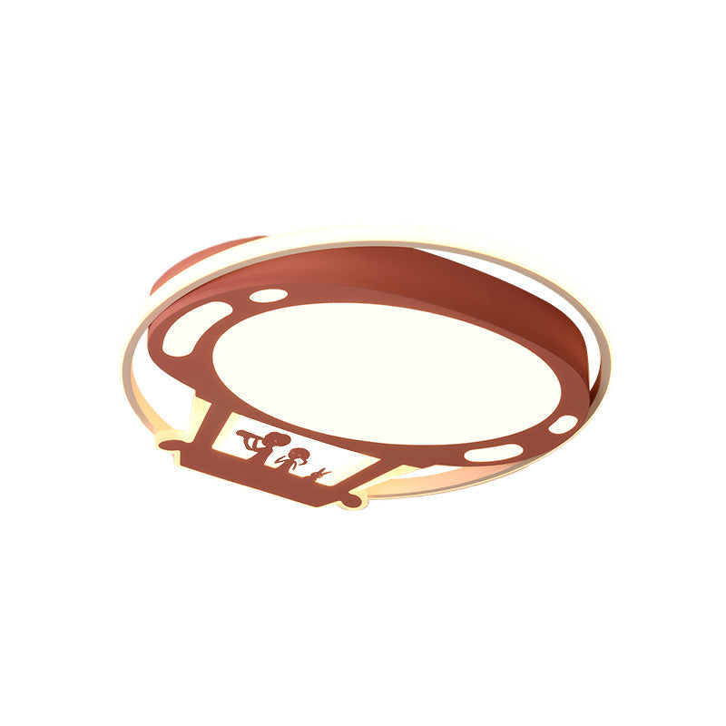 Colorful Cartoon Hot Air Balloon Led Flush Ceiling Light With Metal Shade And Frosted Diffuser Pink