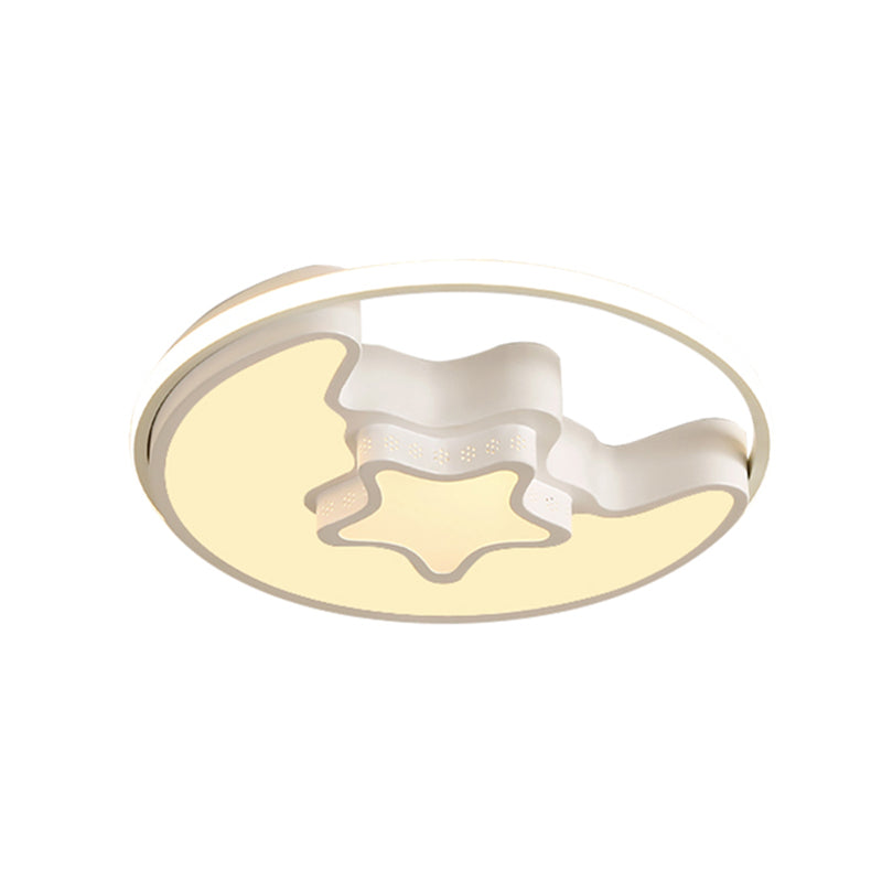 Modern Metal Star And Moon Flush Mount Ceiling Light White Etched Finish For Foyer / Warm
