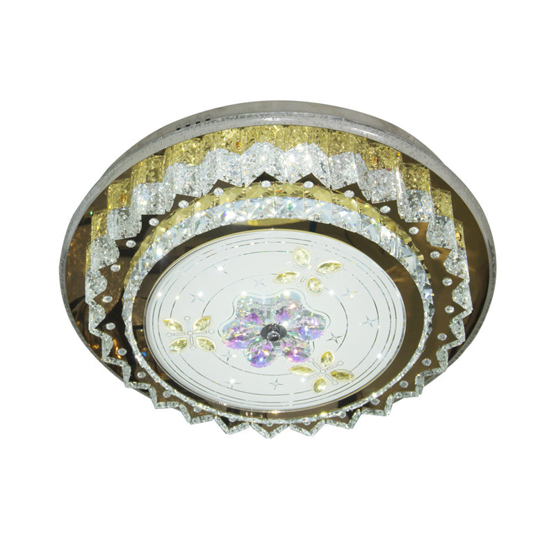 Contemporary Led Bedroom Ceiling Fixture - Crystal Blocks Round Flush Mount In Stainless-Steel