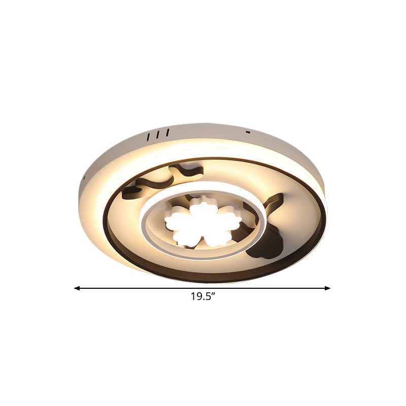 Flush Mount Doughnut Parlor Lamp - Metal Led Ceiling With Floral Design 19.5/23.5 Wide Simplicity In