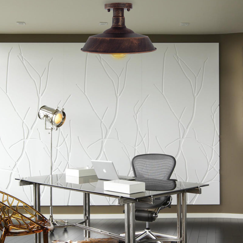 Plafonnier semi-encastré Barn Shade en argent vieilli/cuivre patiné pour une décoration de ferme