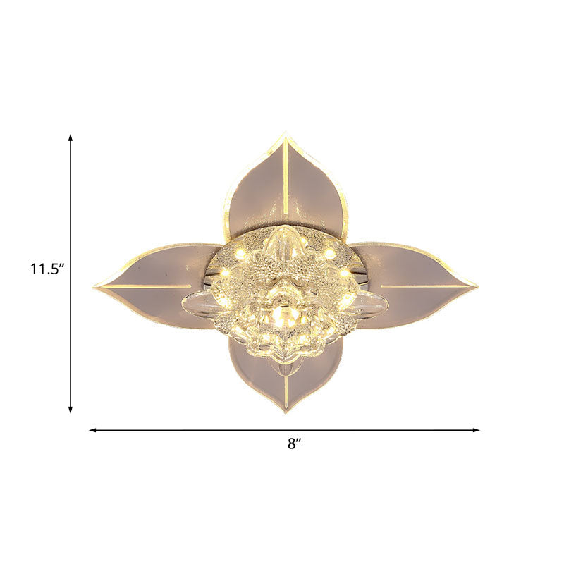 Simple Led Hallway Ceiling Fixture With Clear Crystal Flush Mount & Leaf Edge Design -
