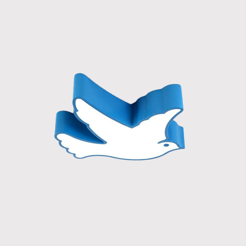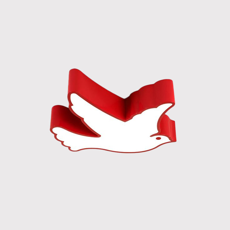 Kids Flying Pigeon Led Flush Mount Ceiling Fixture - White/Red/Yellow Blue