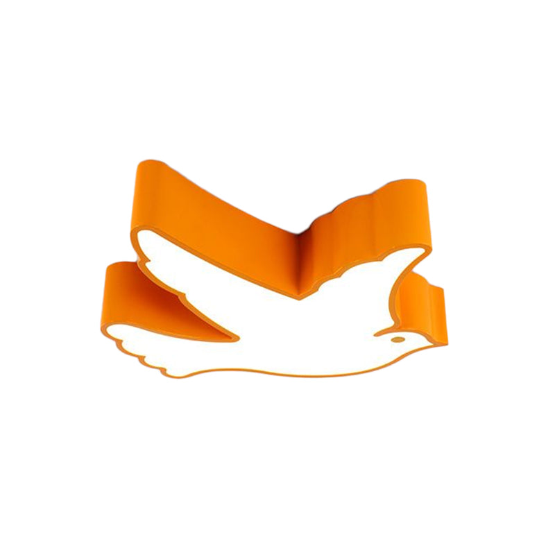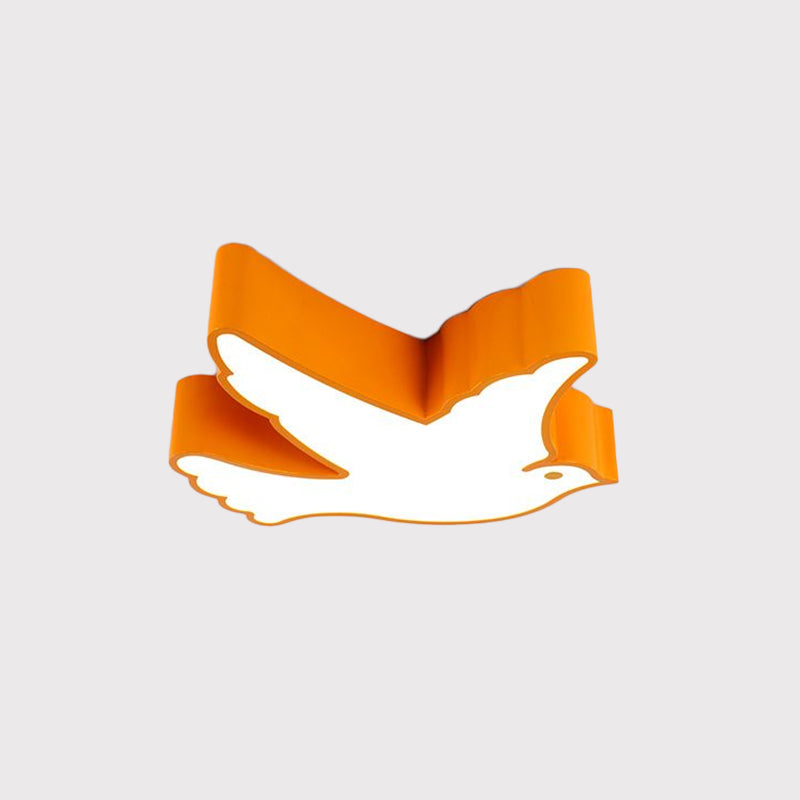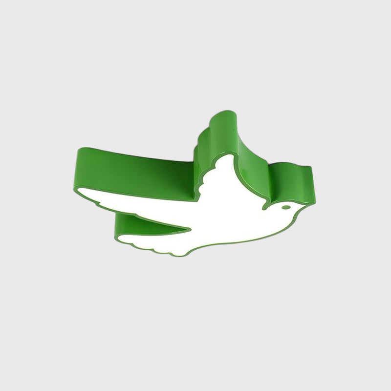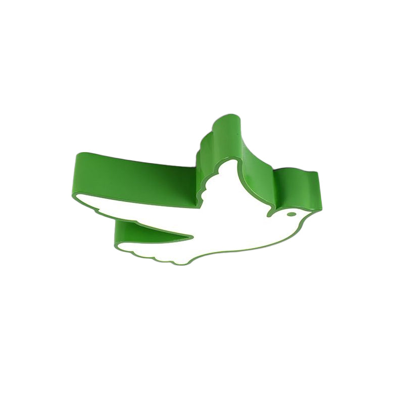 Kids Flying Pigeon Led Flush Mount Ceiling Fixture - White/Red/Yellow Green