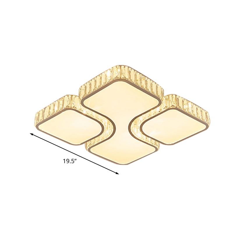 Contemporary Geometric Crystal Block Ceiling Light - Led Flush Mount 16/16.5/35.5 W White/3 Color