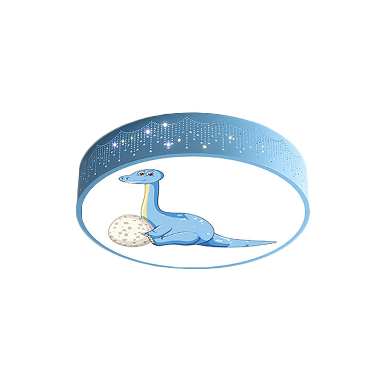 Iron Led Flush Mount Ceiling Light With Dinosaur Pattern In Red/Blue/Green Purple