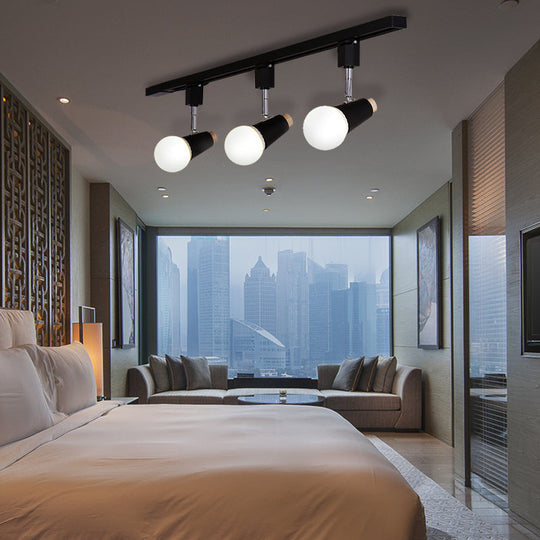 Industrial Metallic Linear Ceiling Light - 3/4 Heads Adjustable Semi Flush Track Fixture With Cup