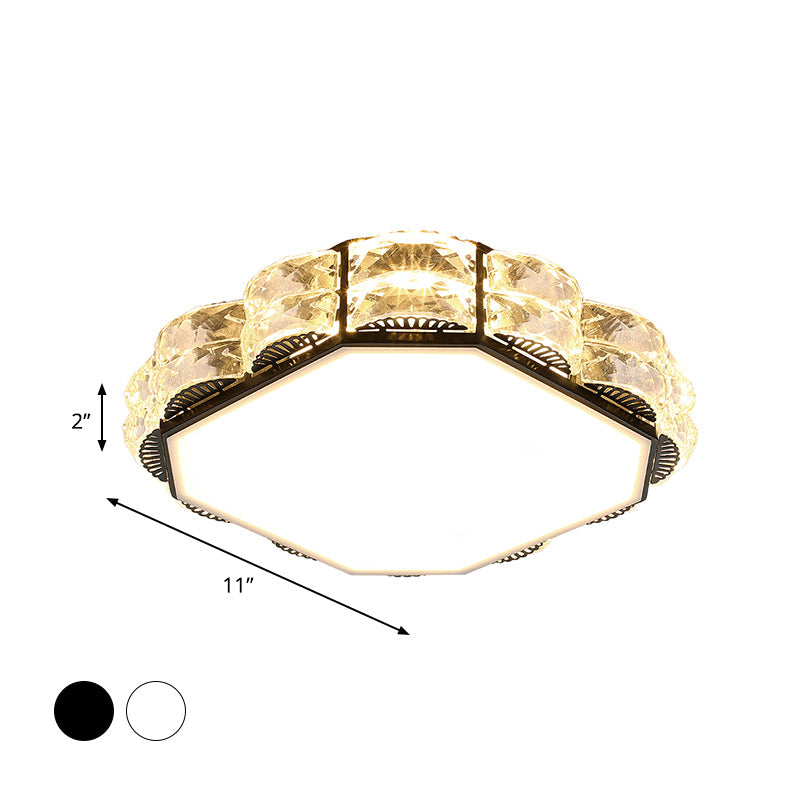 Led Crystal Ceiling Lamp: Simple Scalloped Design Integrated Flush Light Fixture (Black/White)