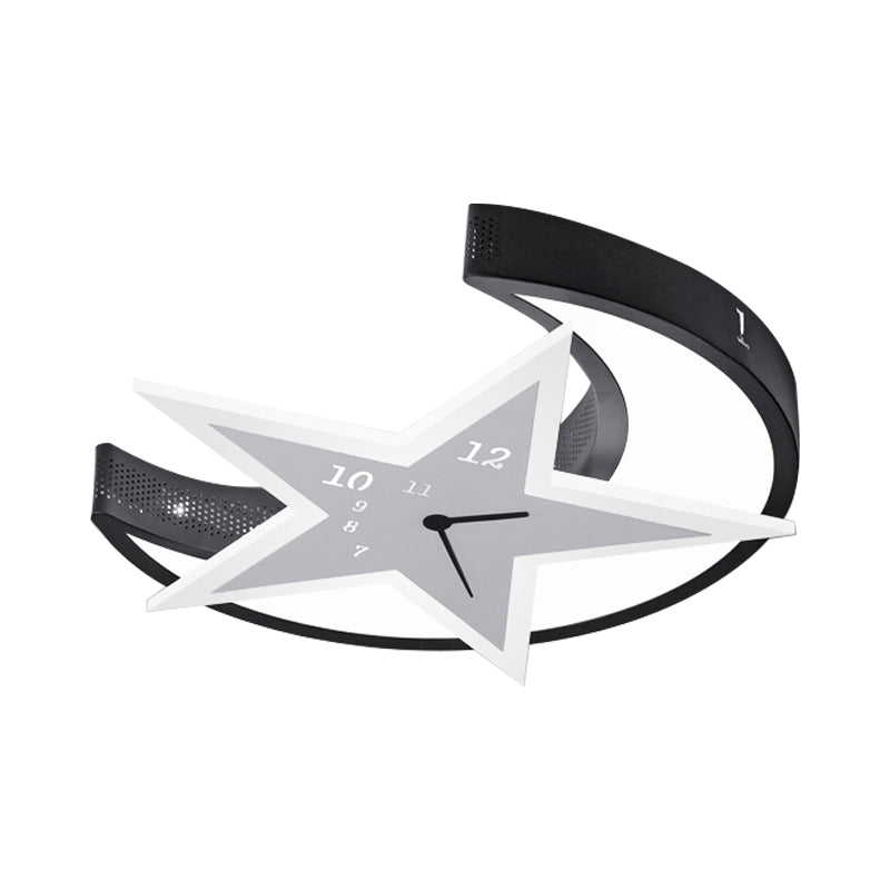 Kid’s Bedroom Flushmount Ceiling Lamp With Star And Moon Cartoon Leds White / 18’ Warm