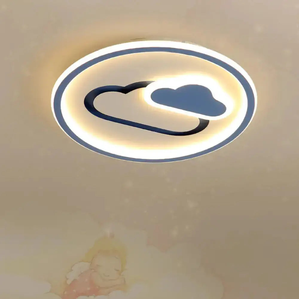 Plafonnier LED ultra fin pour chambre d'enfant au design nuageux - Luminaire en acrylique de 16"/19,5" de large en rose/bleu/noir