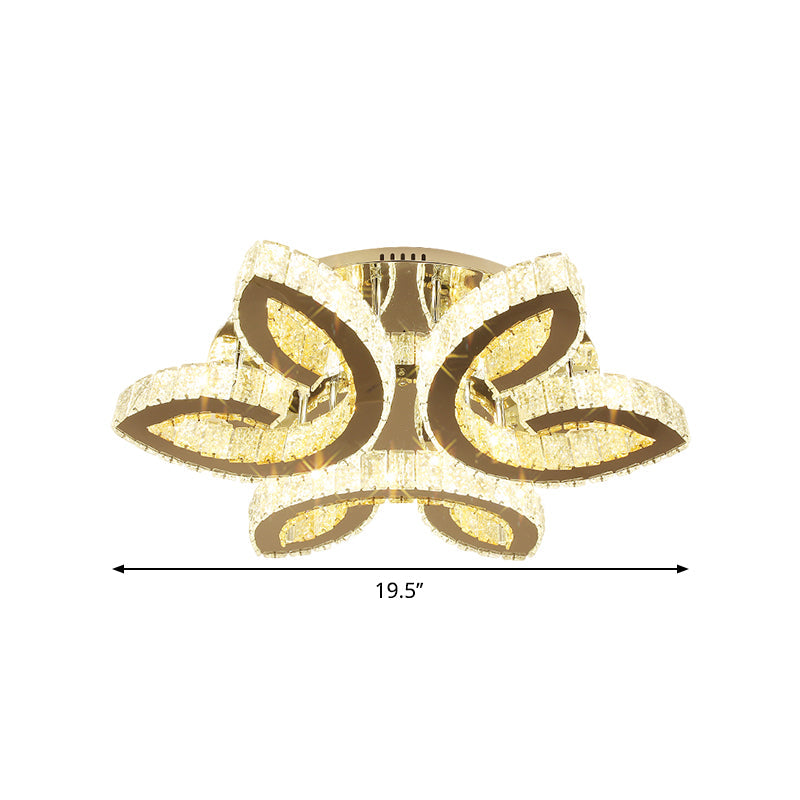 Modern Leaf Bedroom Led Flush Fixture With Clear Crystals And Stainless Steel Stainless-Steel