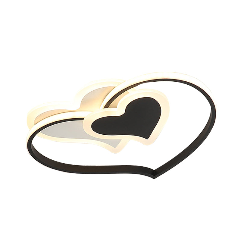 Plafonnier LED moderne à encastrer avec abat-jour en acrylique en forme de cœur - Finition noir/blanc/rose pour chambres