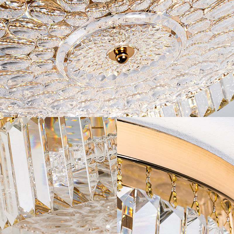 Lampe à encastrer en métal moderniste avec abat-jour tambour à LED et prisme en cristal en finition dorée - 14"/18" de large