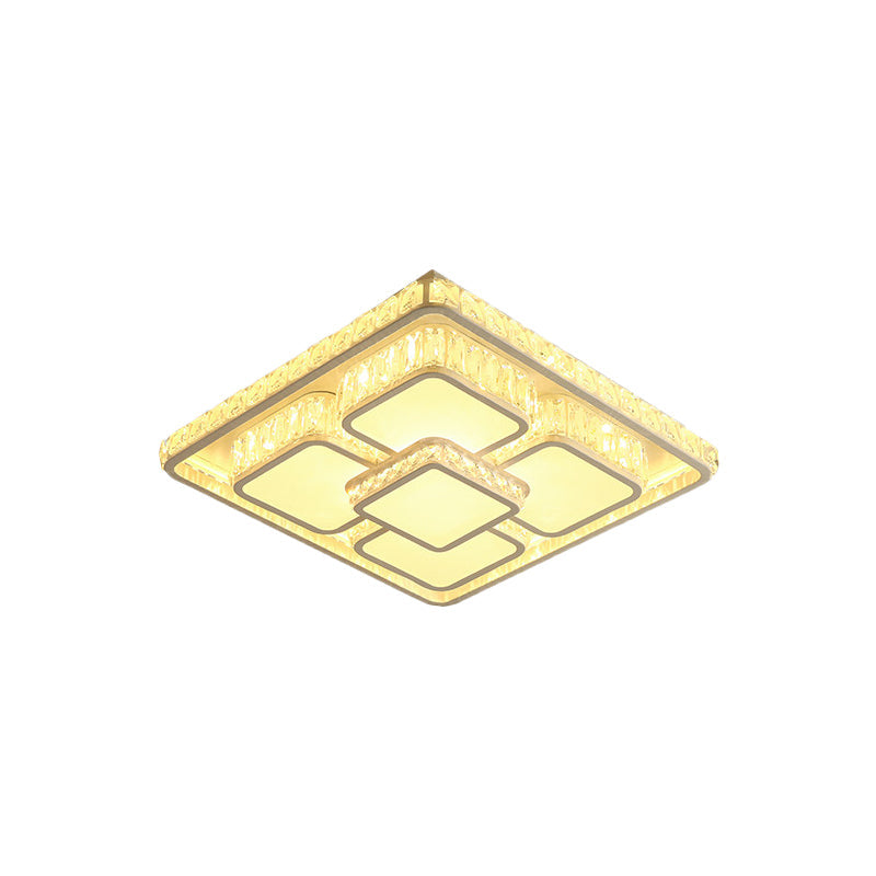 Plafonnier encastré moderne à LED en chrome avec abat-jour carré en cristal