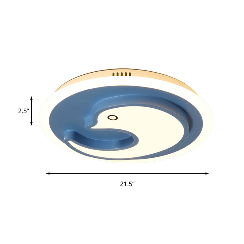 Blue Modern Metal Teen Ceiling Mount Light - Little Dolphin Lamp White / 18