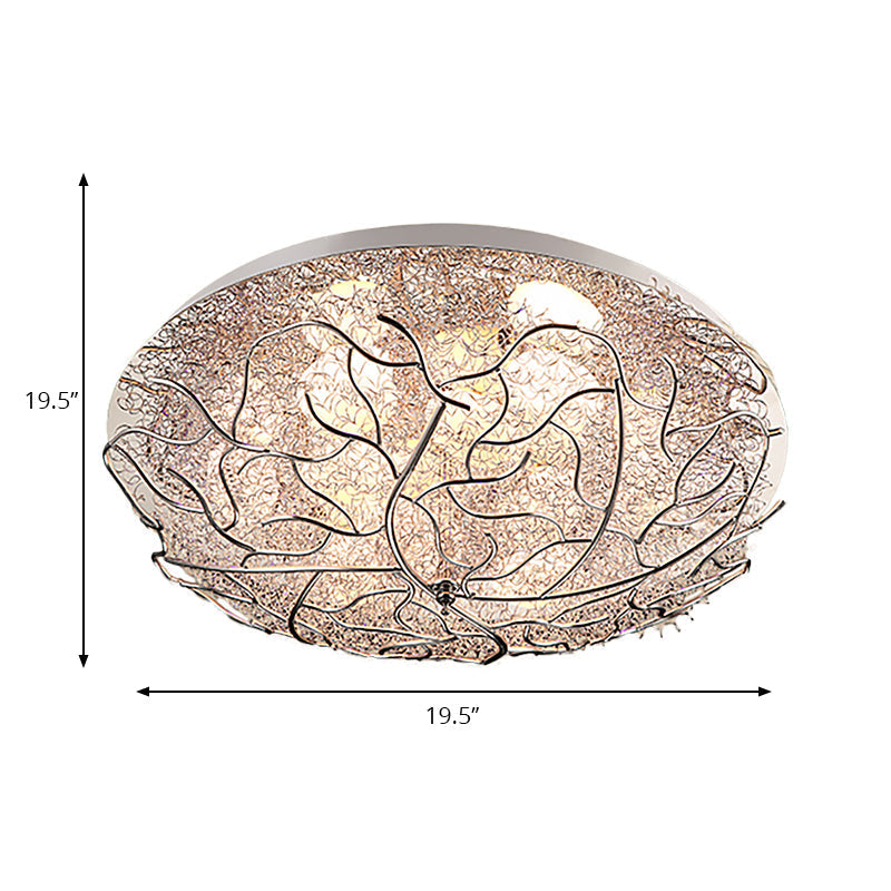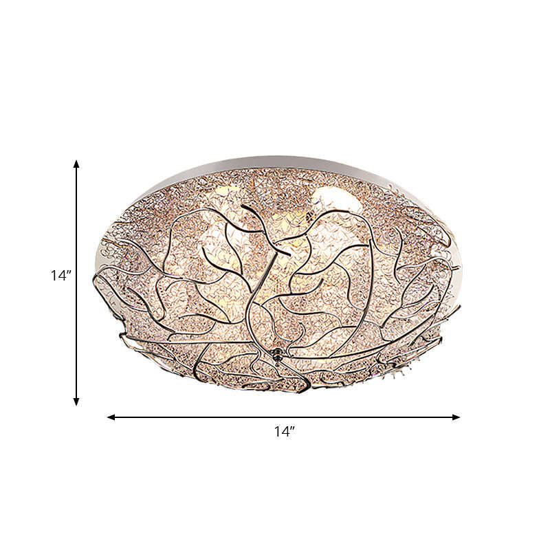 Silver Modern Metal Circle Flush Mount Ceiling Light For Contemporary Living Room / 14