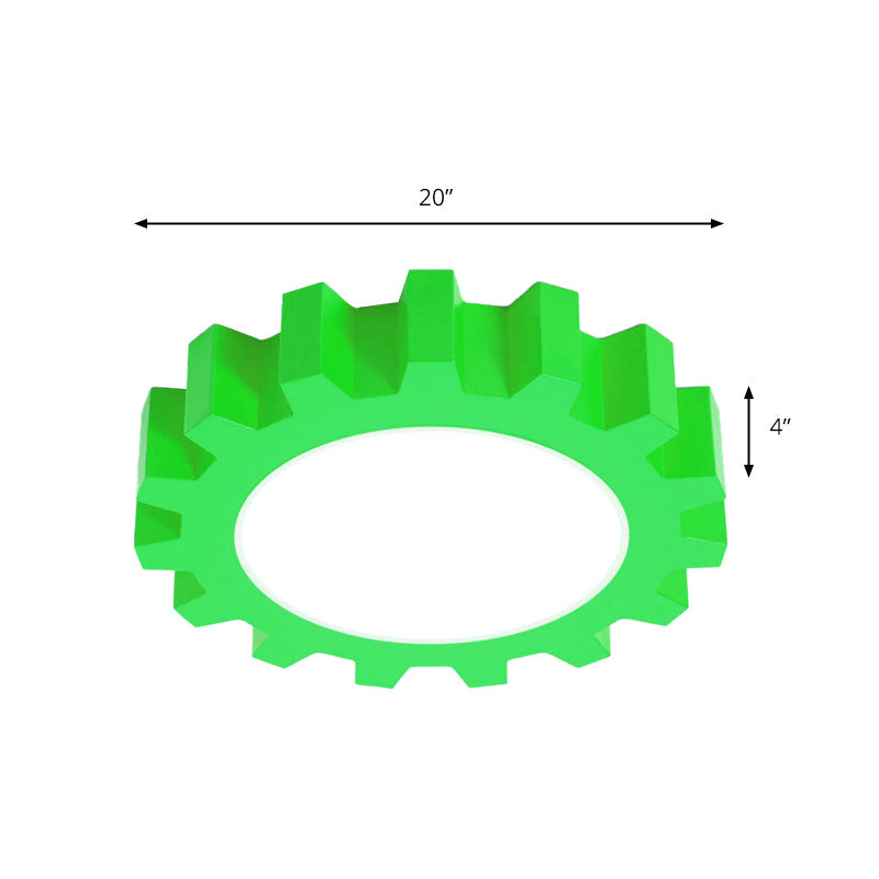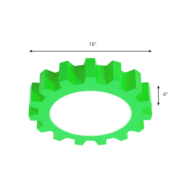 Cartoon Led Ceiling Light For Kindergarten: Metal Gear Mount Green / 16’ Warm