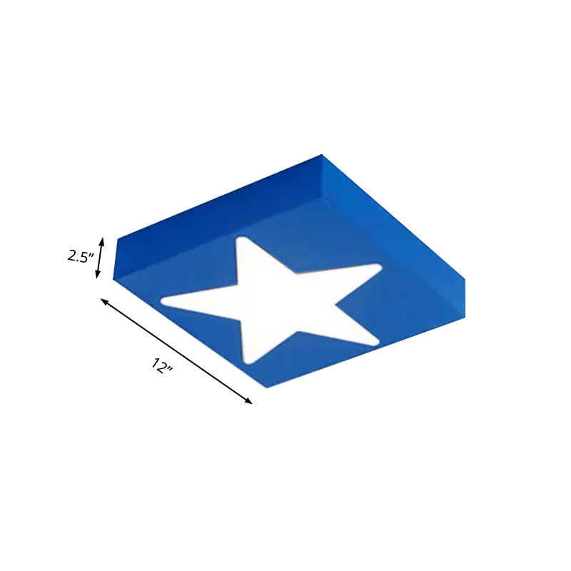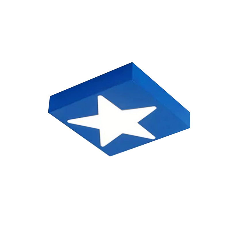 Square Metal Flush Ceiling Light With Star Design - Modern Lighting For Kids Bedroom Red / Warm