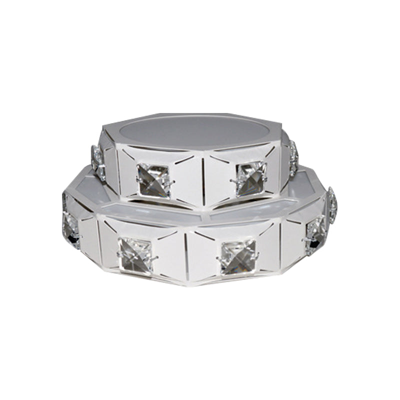 Modern 2-Tier Geometric Led Crystal Flush Light Fixture