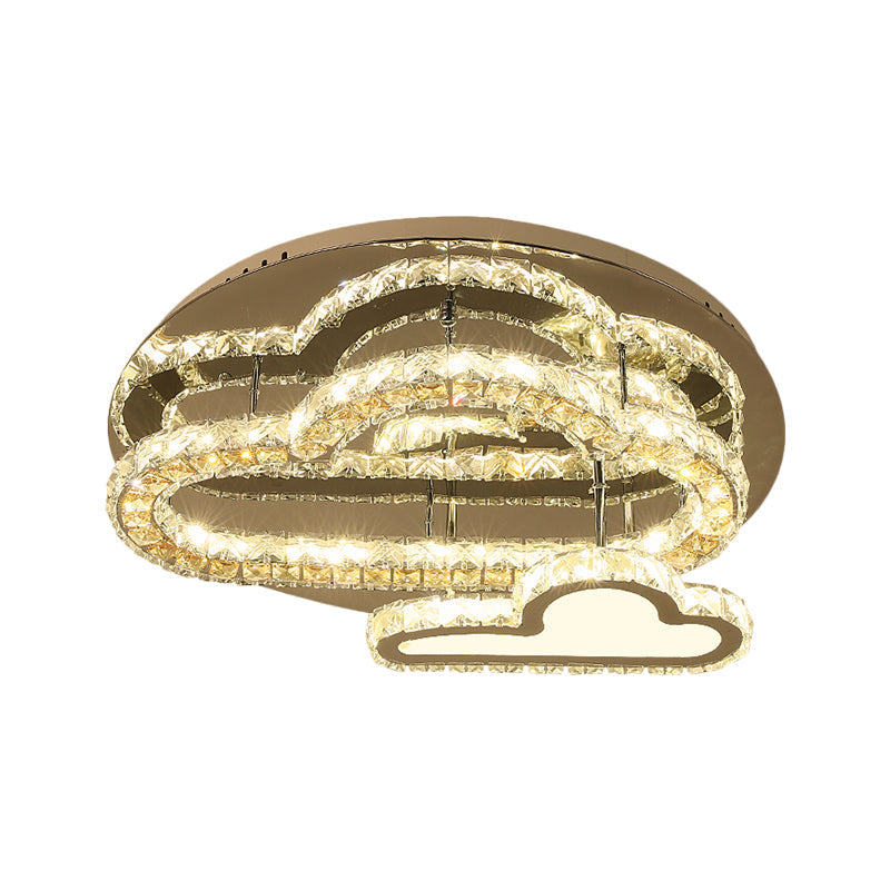 Stainless-Steel Led Ceiling Light With Clear Square-Cut Crystals - Modern Cloud Semi Flush Mount