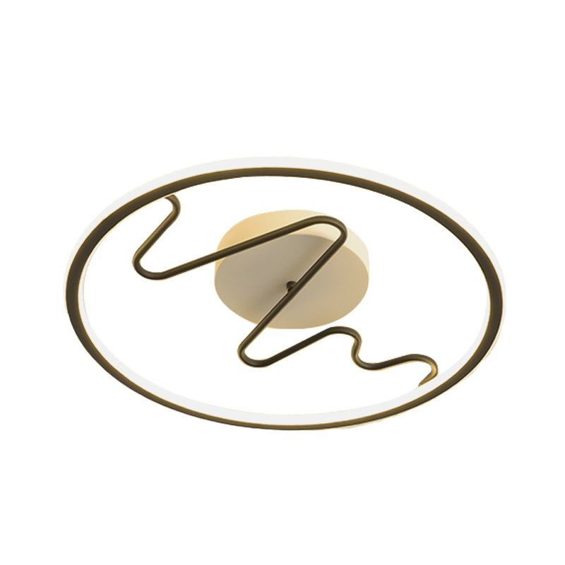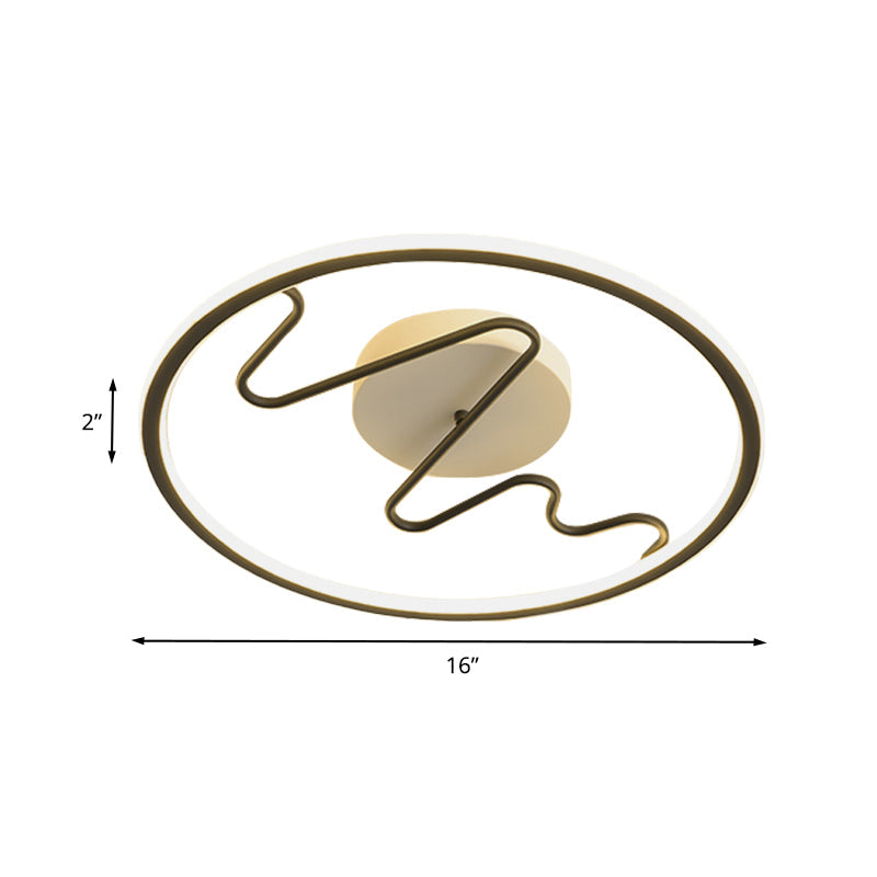 Black Acrylic Led Bedroom Flush Mount Lamp With Modern Ring And Spiral Line Design