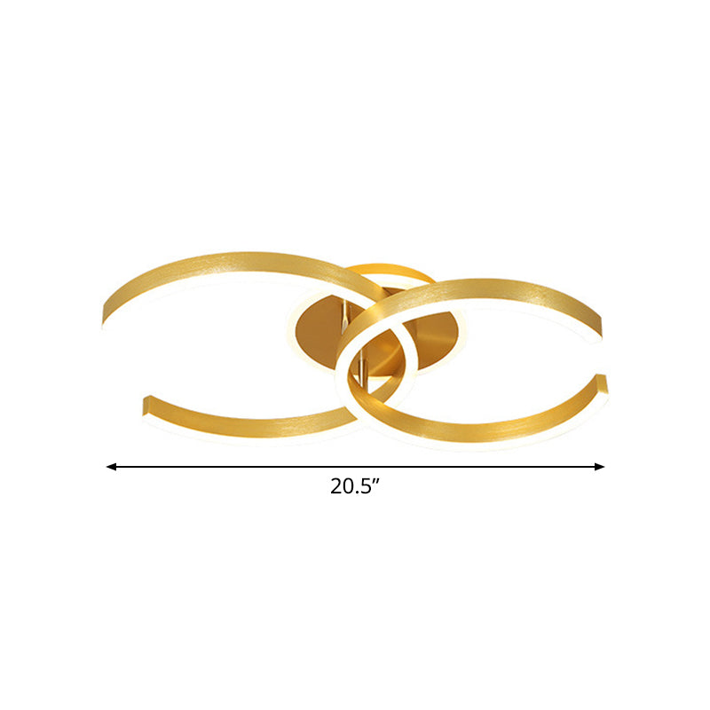 Stylish Dual C Hotel Ceiling Light - Modern 20.5/23 Inch Wide Led Flush Mount In Gold Warm/White /