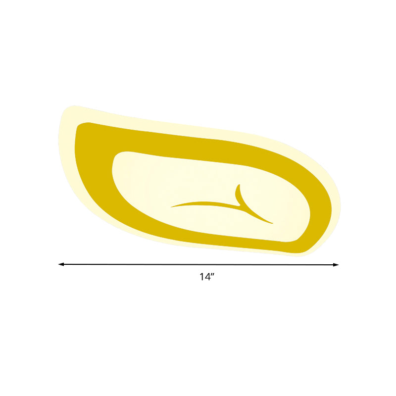Macaron Nursing Room Led Ceiling Light Fixture - Flush Mount Acrylic Leaf Design Yellow