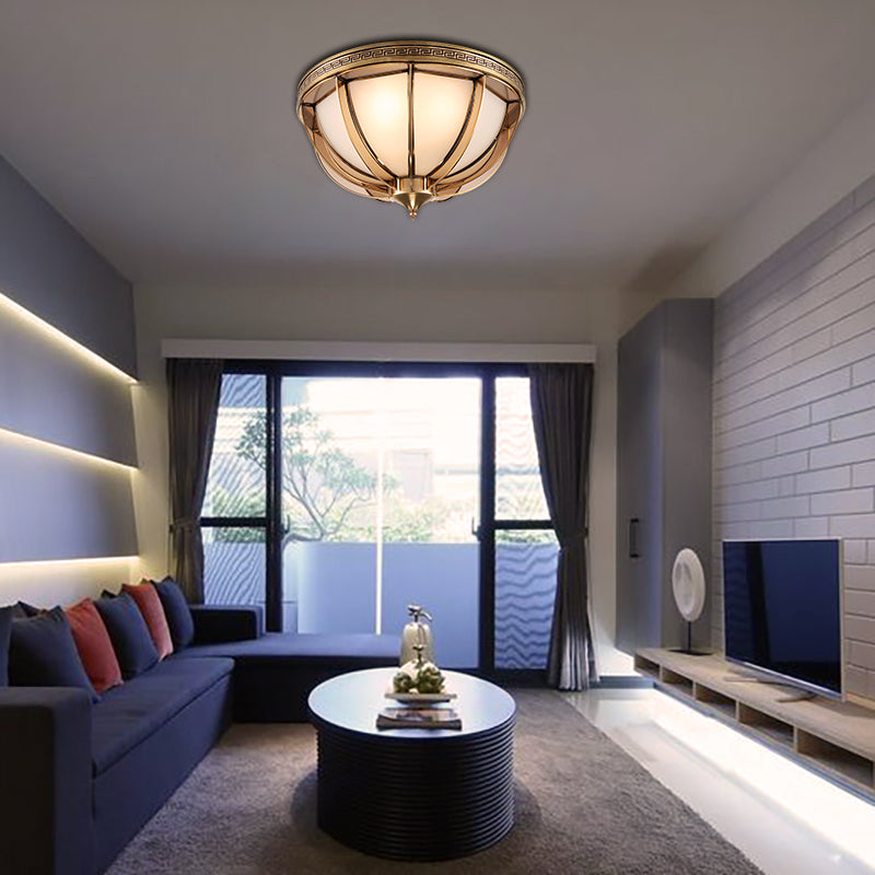 Opal - White Glass Brass Flush Dome Ceiling Lamp - 16.5’/20.5’ Width 3/4 Heads Colonial -