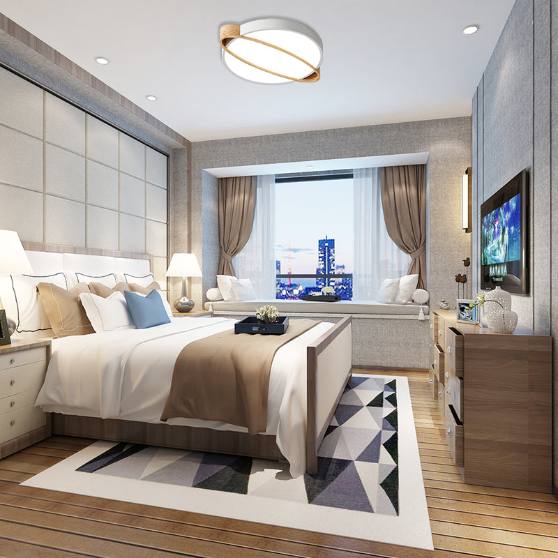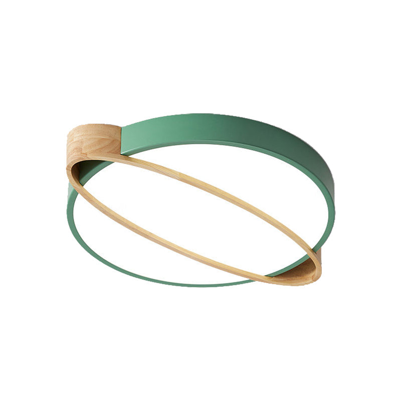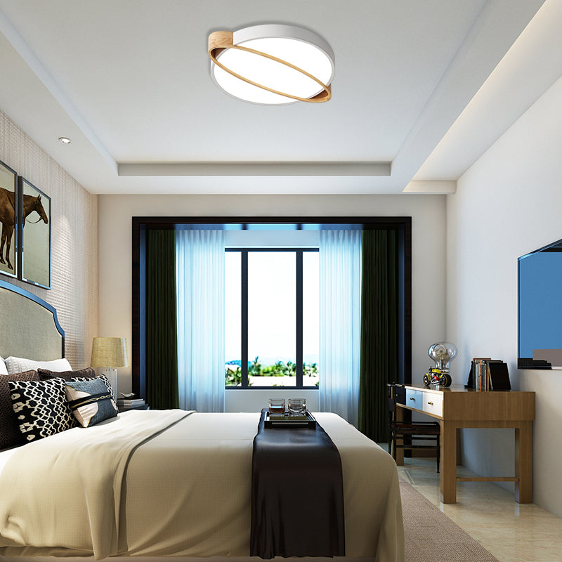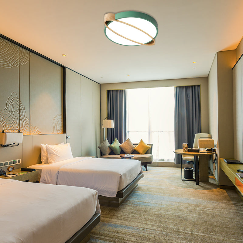 Nordic Acrylic Ceiling Mount Lamp With Led Flushmount Lighting In White/Green/Grey Oval Wood Insert