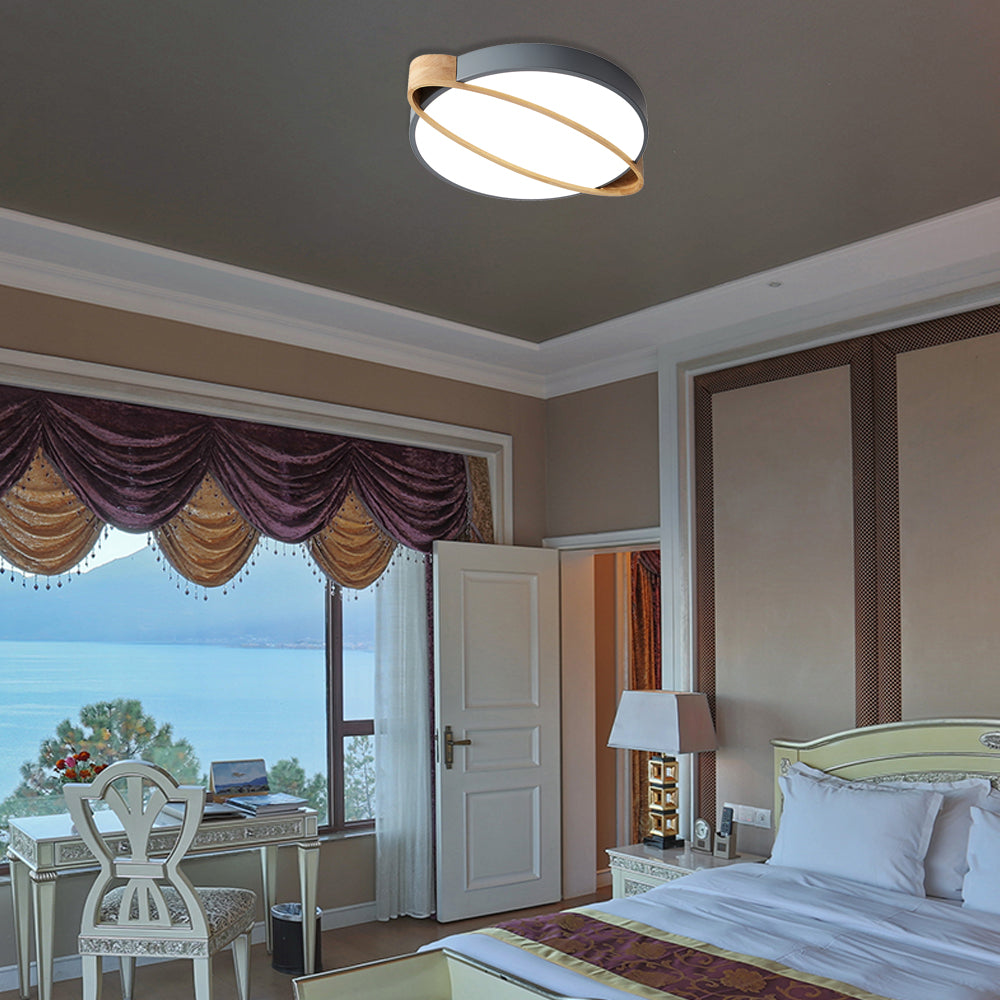 Il s'agit d'un plafonnier au design moderne avec un insert en bois de forme ovale. Il est disponible en blanc, gris et vert, chacun avec sa propre température de couleur. La lumière est LED et la puissance est de 110v-120v ou 220v-240v. La base est SMD et le type de lumière est LED.