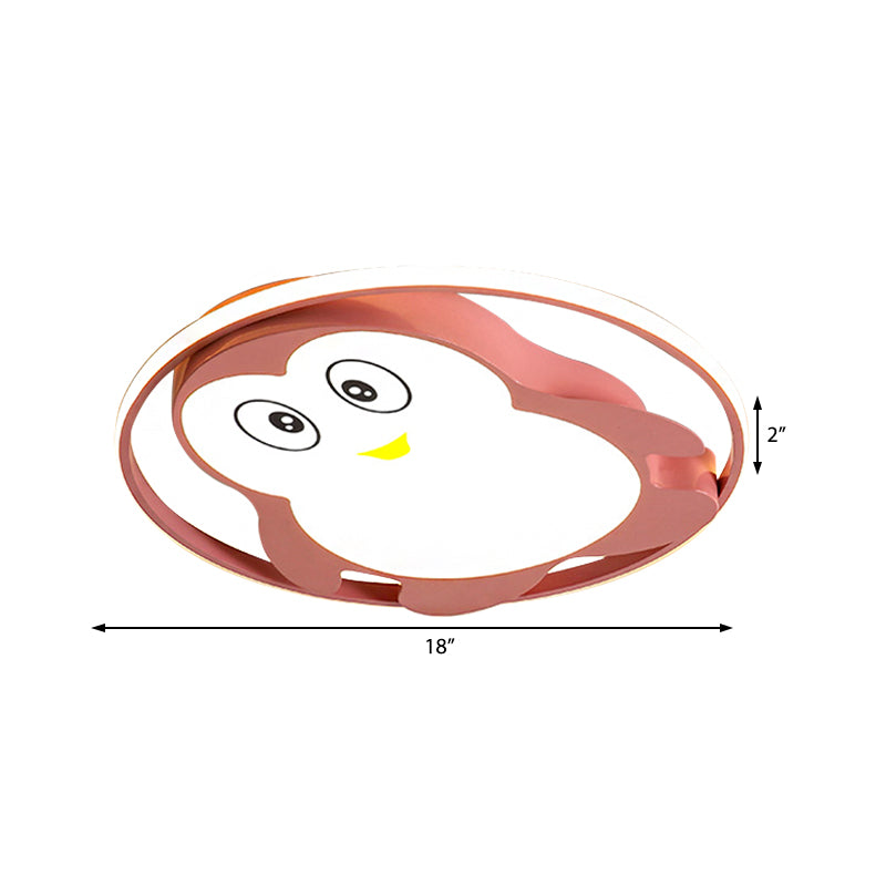 Penguin Bedroom Led Ceiling Fixture - Blue/Pink Cartoon Flush Mount Pink