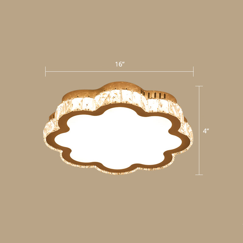 Prismatic K9 Crystal Ceiling Light: Elegant White Flush Mount Led For Bedroom / Small Flower