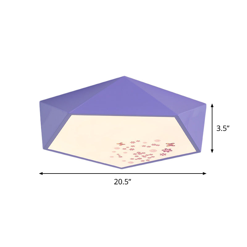 Plafonnier LED encastré en fer macaron à facettes violettes avec motif floral - Solution d'éclairage élégante et efficace