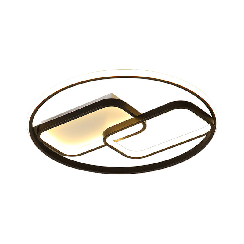 Nordic Style Metal Flush Mount Lamp - Ring And Rectangle Design Led Black Ceiling Light