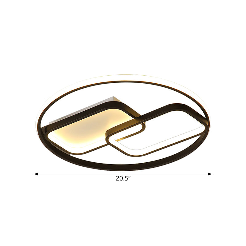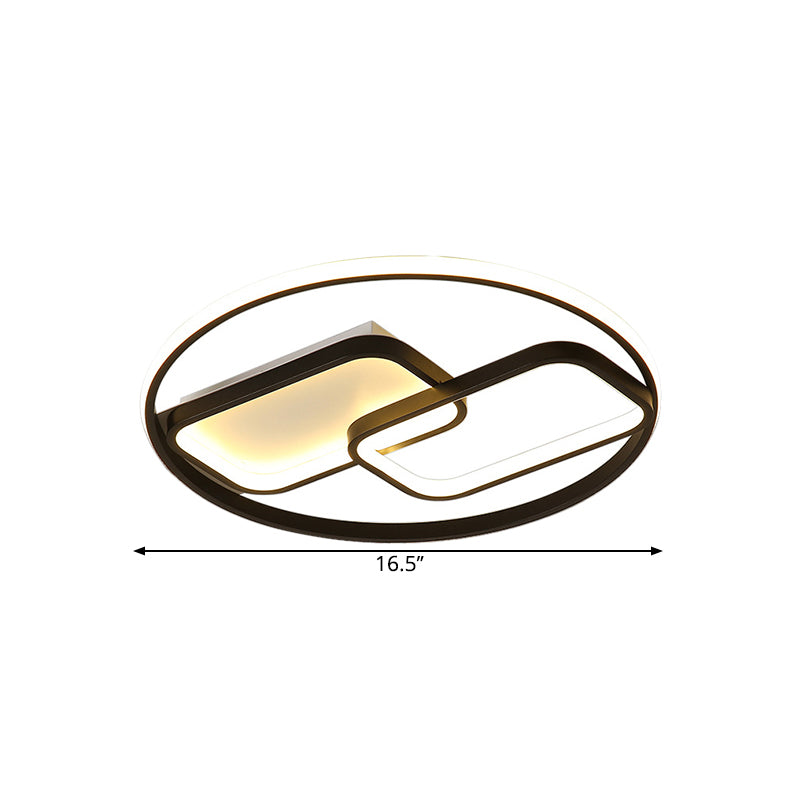 Nordic Style Metal Flush Mount Lamp - Ring And Rectangle Design Led Black Ceiling Light (16.5/20.5W)