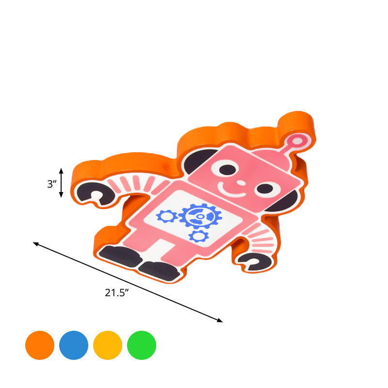 Robot Kinder Lamp - Led Cartoon Flush Mount Fixture In Yellow/Blue/Green Orange