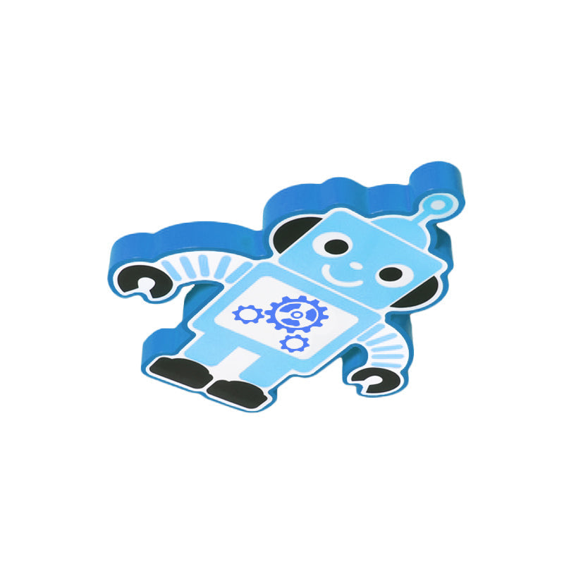 Le plafonnier est conçu en forme de robot, ce qui est parfait pour un jardin d'enfants. La lampe est en acrylique et est disponible en orange, vert, bleu et jaune. La lumière est une LED et a une puissance maximale de 39 watts. Il est encastré et est disponible en trois tensions différentes : 110 V-120 V, 220 V-240 V.