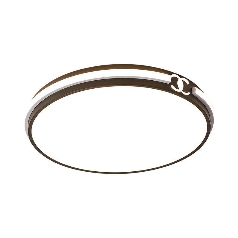 Modern Round Flush Mount Ceiling Light For Bedroom - Black/Gold Led Fixture In Warm/White