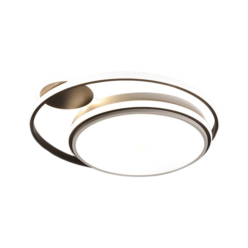Modern Round Flush Mount Led Lamp In Black With Warm/White Light And Simple Metal Design -