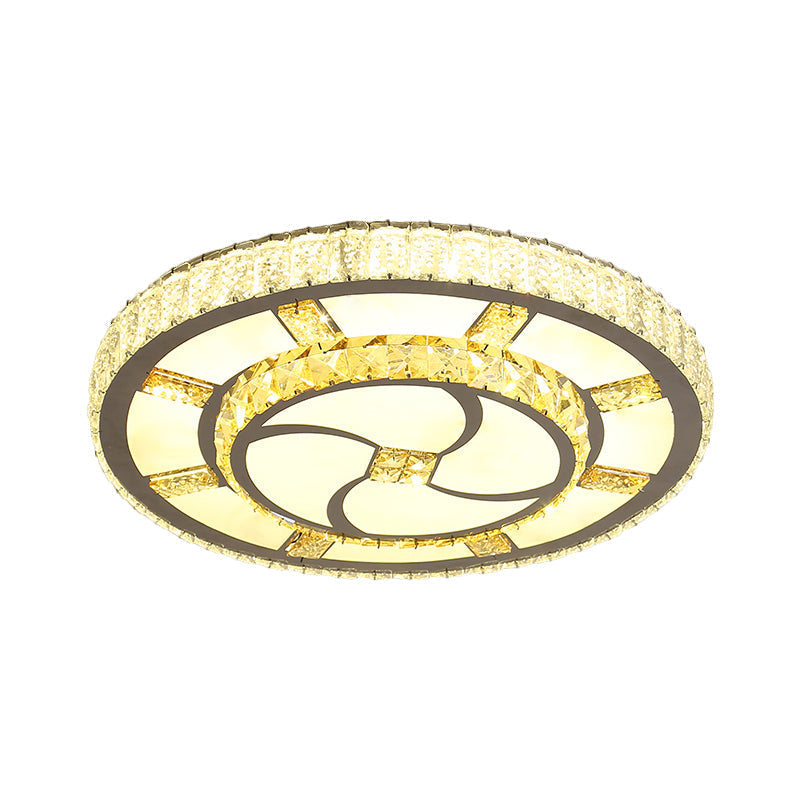 Stainless-Steel Led Flush Mount Ceiling Light With Clear Crystal Block Design / C