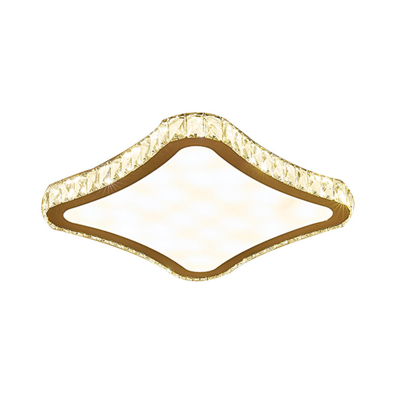 Plafonnier LED moderne en cristal chromé - Design carré biseauté, éclairage encastré (11"/15"/19,5" W)