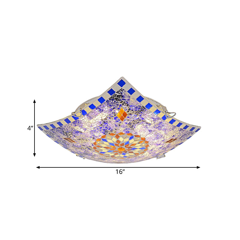 Baroque Style Purple Glass Led Flush Mount Recessed Light Fixture - Square Design 12/16/19.5 Wide