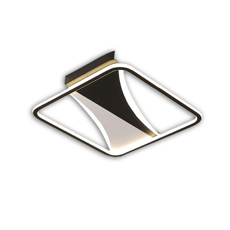 Plafonnier moderne en acrylique pour chambre à coucher - Plafonnier carré/rectangulaire en noir/blanc, LED chaud/blanc, 16"/19,5"/23,5" W